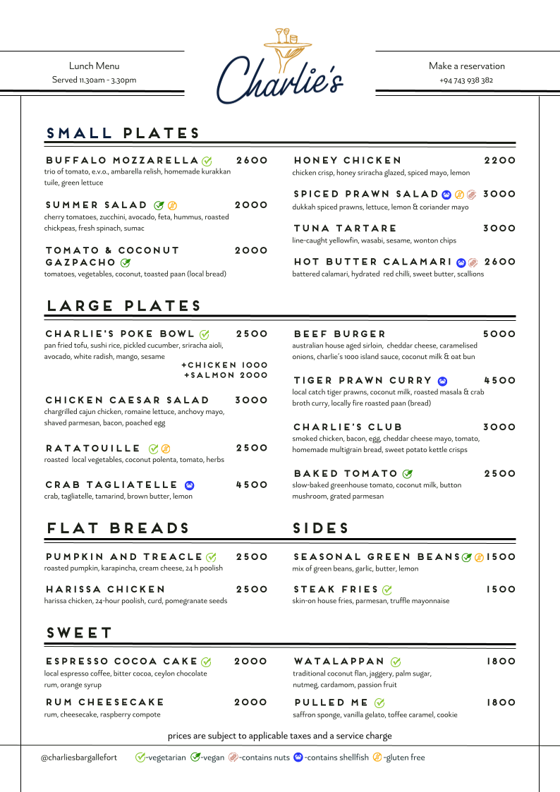 Welcome to Charlie’s Bar & Bistro, a culinary gem nestled at 78 Lighthouse St, Galle, Sri Lanka. This vibrant establishment offers an impressive menu that balances local flavors with international flair. From the tender Beef Burger featuring aged Australian sirloin to the vibrant Charlie's Poke Bowl with pan-fried tofu, each dish is crafted with care and creativity.